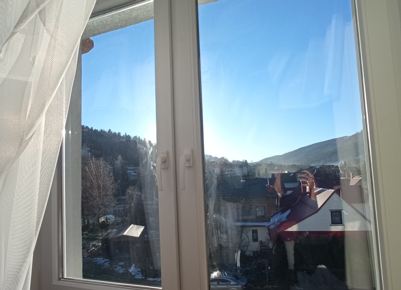 Pokój ma widok na góry. Ponadto do dyspozycji naszych gości jest w obiekcie wspólna dla 8 pokoi kuchnia wyposażona w dwie jednopalnikowe płyty indukcyjne do gotowania , mikrofala ,opiekacz, toster , expres do kawy , oraz inne akcesoria potrzebne do gotowania czy smażenia . Razem z kuchnią w jednym pomieszczeniu jest stołówka ze stołami do spożycia przygotowanych posiłków. Dla każdego pokoju jest bezpłatnie miejsce parkingowe . W budynku znajduje się narciarnia z suszarnią na buty w zimie dla narciarzy a w lecie jest to bezpieczne miejsce na rowery .